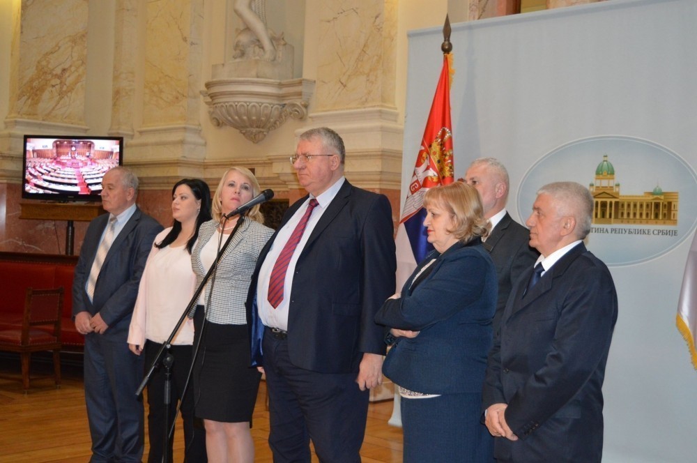 Проф. др Војислав Шешељ: Мислим да је грешка правити ту паузу. Ја не знам због чега данас није настављена седница. Видели сте ми смо сви дошли. Били смо спремни за ту седницу, иако није био неки посебно значајан дневни ред. Било је неких 12 тачака, углавном потврда, ратификација међународних уговора. Има и много пречих ствари, али то нису износили на дневни ред. Ако већ морамо те паузе да правимо, онда да се сад распусти Скупштина, па да одлучујемо у новом сазиву после парламентарних избора и пред новим сазивом да положим председничку заклетву. И то бих волео. Изволите.