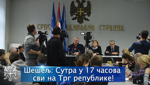 Даме и господо, сутра, на годишњицу злог пролећа из 1999. године, на годишњицу варварског НАТО бомбардовања Србије и српског народа, Српска радикална странка држи велики митинг у 17 часова на Тргу републике у Београду. Дакле, 24. марта у 17 часова.