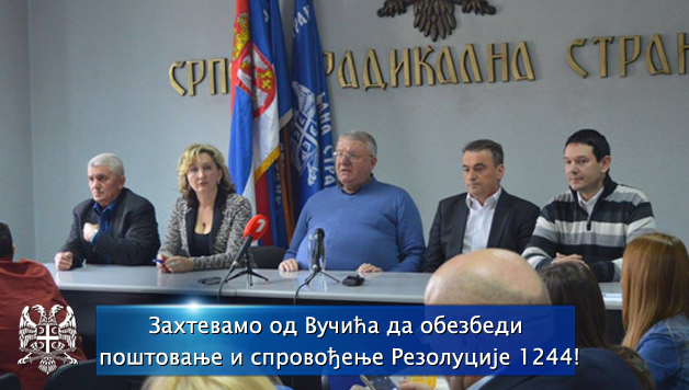 И друго, Република Србија преко Владе и премијера Вучића треба непрекидно да инсистира да се испуни Резолуција 1244 по питању Косова и Метохије. Од 5. октобра на овамо ниједна власт то није тражила. Нико се није усудио нигде то јавно да помене од представника владајућих партија. На томе је непрекидно инсистирала само Српска радикална странка. До 2008. године на томе су инсистирали Томислав Николић и Александар Вучић кад су били чланови наше странке, од 2008. године су и они престали.