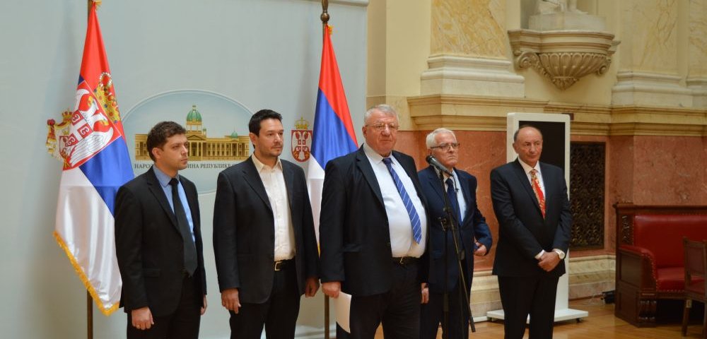 Prof. dr Vojislav Šešelj: Dame i gospodo, kao što vidite Srpska radikalna stranka pismeno je podnela zahtev na osnovu člana 209 i 210 Poslovnika o radu Narodne skupštine da se zakaže posebna sednica Narodne skupštine…