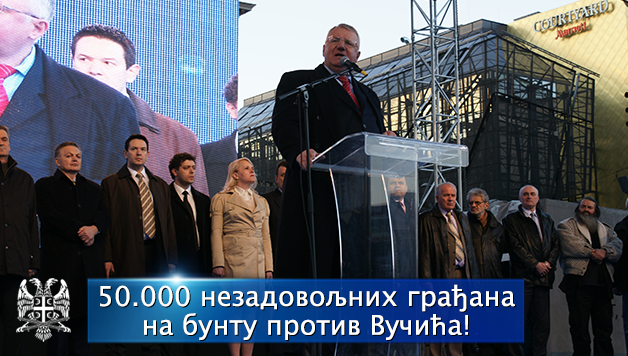 Српска радикална странка одржала је данас велики митинг на Тргу Републике у Београду. На митингу под називом "Народни бунт против Вучићевог режима" окупило се око 30.000 незадовољних грађана. На митингу се протестовало због драконске и потпуно неправедне пресуде бившем председнику Републике Српске Радовану Караџићу, због погубне и антисрпске политике коју спроводи напредњачки режим и у знак сећања на невине жртве НАТО бомбардовања 1999. године.
