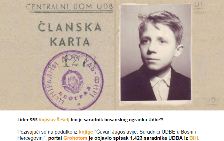 Оригинал фотографије која се налази на фото-монтажи чланске карте УДБЕ налази се у просторијама Српске радикалне странке. У питању је фотографија Војислава Шешеља из седмог разреда основне школе. Фотографија се појавила на интернету пре више од шест месеци, 29. децембра 2015., када је Војислав Шешељ поставио на свој инстаграм налог и страницу на фејсбуку.