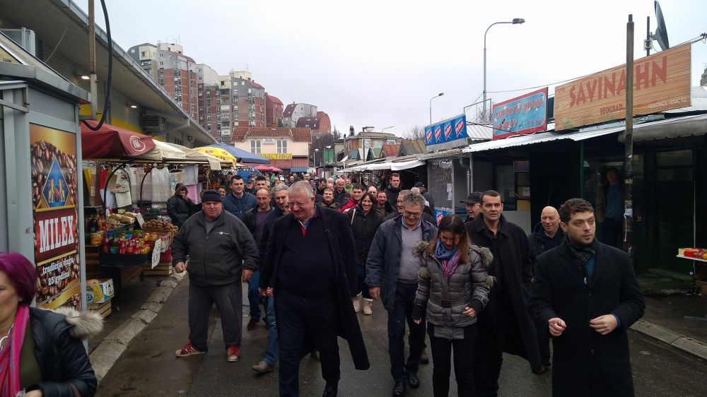 Носилац листе Српске радикалне странке проф. др Војислав Шешељ и кандидат за градоначелника Миљан Дамјановић обишли су данас пијацу на Видиковцу где су разговарали са грађанима.