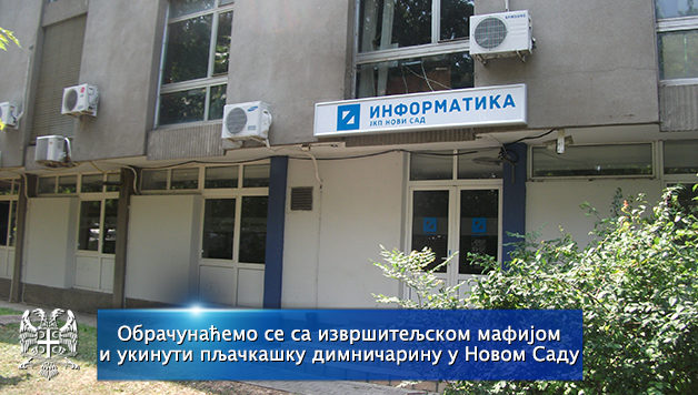 Шокантан податак Државне ревизорске институције, да је ЈКП „Информатика“ у 2013. години, на територији Новог Сада покренула преко 20000 поступака за принудну наплату, због неизмирених обавеза за комуналије, а да је преко 19000 предмета завршило у канцеларији извршитеља – криминалца Светислава Ћурчића, веома блиског Трећој Србији и Српској напредној странци, слика је и прилика корумпиране и пљачкашке власти, која је харала Новим Садом у последње четири године.