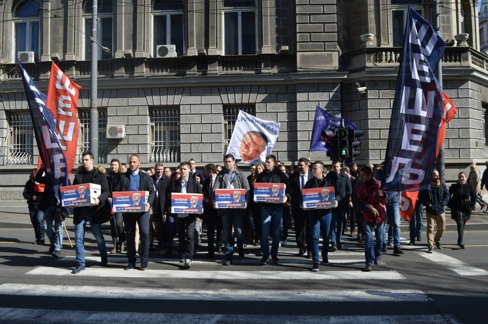 Група младих присталица Српске радикалне странке предвођена Миљаном Дамјановићем, председником градског одбора Српске радикалне странке, тачно у подне предала је потписе подршке за кандидатуру проф. др Војислава Шешеља за председника Србије.