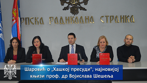 Заменик председника Српске радикалне странке Немања Шаровић представио је на данашњој конференцији за медије најновију књигу проф. др Војислава Шешеља под насловом „Хашка пресуда – први део“.