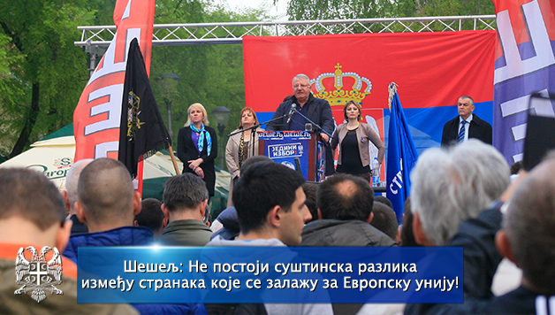 Председник Српске радикалне странке проф. др Војислав Шешељ, говорећи на митингу у Пожаревцу, истакао је да је данашња српска политичка сцена крајње поједностављена. Шешељ је објаснио да се сви политички субјекти који желе да виде Србију у Европској унији и НАТО пакту налазе на истој страни, без обзира што се често међусобно сукобљавају. Он је напоменуо да не постоји суштинска разлика између странака које су од 5. октобра до данас уништавале и пљачкале Србију и гурале њене грађане у све дубље безнађе. Шешељ је навео да се на другој страни политичке сцене налазе само српски радикали, који се оштро противе европским интеграцијама и инсистирају на интеграцији са Русијом.