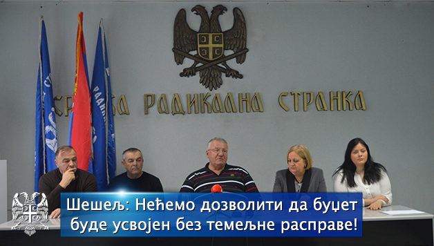 Лидер радикала објаснио је да нема смисла да се усваја буџет за 2017. годину, ако није утврђено како су утрошена буџетска средства за 2015. годину. Буџет не може да опстане без контроле а народни посланици су ти који имају обавезу да контролишу Владу у погледу располагања буџетом. Влада има обавезу да благовремено достави посланицима предлог буџета, о ком би се расправљало прво на свим одборима а потом и на седници Народне скупштине. Шешељ је истакао да нема потребе да се буџет усваја на брзину, посебно због чињенице да Народна скупштина протеклих месеци није радила пуним капацитетом и да ниједан важан закон није донет од конституисања овог парламентарног сазива.
