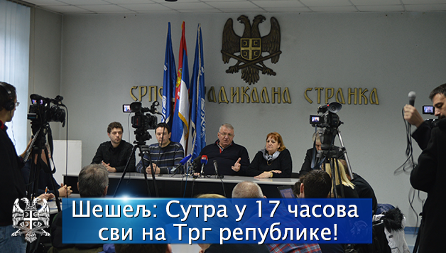 Шешељ је истакао да ће радикали на сутрашњем митингу изразити своју вољу и свој пркос, свој понос и достојанство и своје енергично противљење даљем поробљавању и уништавању Србије. Српска радикална странка позива на сутрашњи митинг све грађане Србије који су против уласка у Европску унију и НАТО пакт, све они који се супротстављају злочиначком Хашком трибуналу и који подржавају идеју интеграције са Русијом.