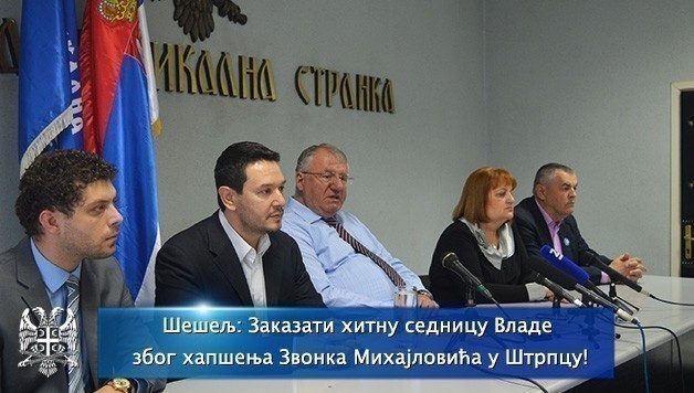 На ванредној конференцији за медије одржаној у централи Српске радикалне странке, проф. др Војислав Шешељ обавестио је јавност да је високи функционер радикала Звонко Михајловић јутрос око 6 часова ухапшен у Штрпцу од стране косовске полиције, по наређењу албанске сепаратистичке и терористичке власти на Косову и Метохији.
