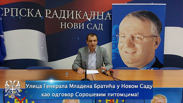 „Српска радикална странка обновила је данас иницијативу да једна улица у Новом Саду понесе име генерала Младена Братића, команданта Новосадског корпуса ЈНА, који је погинуо 4. новембра 1991. године, на вуковарском ратишту, две недеље пре ослобођења српског Вуковара од усташких паравојних формација. Одборничка група „Др Војислав Шешељ – Српска радикална странка“ у Скупштини Града Новог Сада поднела је захтев да се дневни ред седнице Скупштине, која је заказана за среду 14. децембра, по хитном поступку допуни тачком „Предлог одлуке о именовању улице у Новом Саду именом генерала Младена Братића“ – изјавио је на данашњој конференцији за медије Ђурађ Јакшић, шеф одборничке групе „Др Војислав Шешељ – Српска радикална странка“ у Скупштини Града Новог Сада.Јакшић је рекао, да је српске радикале на ову иницијативу подстакла хистерична кампања и хајка осведочено србофобичних НВО, које су на платном списку Џорџа Сороша, а поводом „изложбе“ о Вуковару, организоване од стране злогласне организације „Жене у црном“ и тзв. „Арт клинике“ из Новог Сада. Српски радикали истичу да Сорошеве НВО, већ недељу дана, замајавају јавност болесним реакцијама и саопштењима, у којима се не крије мржња према свему што је српско.„У центру пажње Сорошевих питомаца је блаћење части и угледа официра, војника и резервиста, који су се, у оквиру Новосадског корпуса ЈНА, јуначки три месеца борили за ослобађање Вуковара од усташких паравојних јединица. Српска радикална странка је поносна на улогу Новосадског корпуса у ослобађању Вуковара и зато покрећемо иницијативу да се једна улица у нашем граду назове именом генерала Младена Братића, страдалог команданта Новосадског корпуса“ – истакао је Јакшић.Српска радикална странка је против било ког облика насиља и уништавања имовине, али смо уверени да је читав догађај, у вези са уништавањем „изложбе“, исфабрикован и инсцениран, од стране оних који су „изложбу“ поставили и који у последњих недељу дана реагују на њено уништавање.„Како би другачије маргиналне НВО са израженим антисрпским деловањем доспеле у жижу јавности, него као жртве инсценираног насиља. Иако је та „изложба“ требало да испровоцира Новосађане, они су остали потпуно равнодушни. Ту је настао проблем и зато је инсцениран догађај од прошле недеље, након којег је читава Србија чула за нову „генијалност“ Сташе Зајовић и њених компањона“ – рекао је Јакшић.„Српска радикална странка позива власт у Новом Саду да подржи иницијативу, да се једна улица у нашем граду назове именом генерала Младена Братића, као одговор србофобичним НВО на блаћење Новог Сада и некадашњег Новосадског корпуса ЈНА“ – закључио је Ђурађ Јакшић.