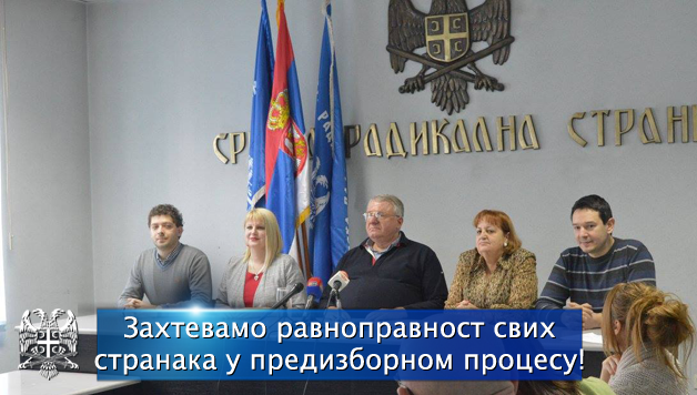 Српски радикали сматрају да државна телевизија мора бити апсолутно неутрална и да свим странкама морају бити обезбеђени исти услови за представљање у кампањи. Захтевамо постизање договора према ком би свака странка која испуни услове за подношење кандидатске листе добила одређен број минута за бесплатно емитовање спотова на Јавном сервису. Такође захтевамо да се обнови добра пракса из ранијег периода, да се све политичке странке сучељавају на округлим столовима на државној телевизији по различитим темама. Захтевамо да буде 12 округлих столова и да на сваком све странке учеснице избора имају своје представнике.