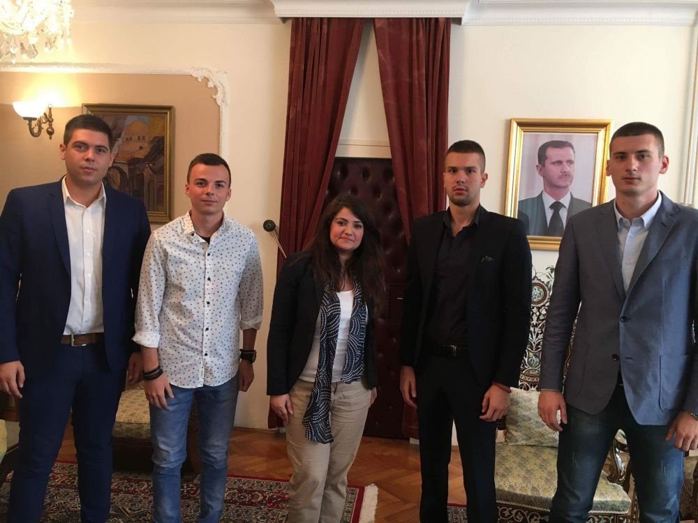 „Сирија се учврстила на међународној сцени као један од лидера у борби против глобализма и агресорске политике коју воде западни центри моћи, што је положај који је Србији познат још од периода 90-их година прошлог века – кажу омладинци и додају да је управо Србија била прва земља на којој су тестирани овакви типови смене легитимних власти. Ми саосећамо са народом Сирије који се нашао на удару истих тих центара моћи, међу чијим вођама и творцима планова спровођења преврата има појединаца који су чак и држављани Србије, попут доказаног екстремисте Срђе Поповића, лидера Канваса“ рекао је у разговору са званичницима Амбасаде Сиријске Арапске Републике председник Савета за омладину и спорт Предраг Маринковић.